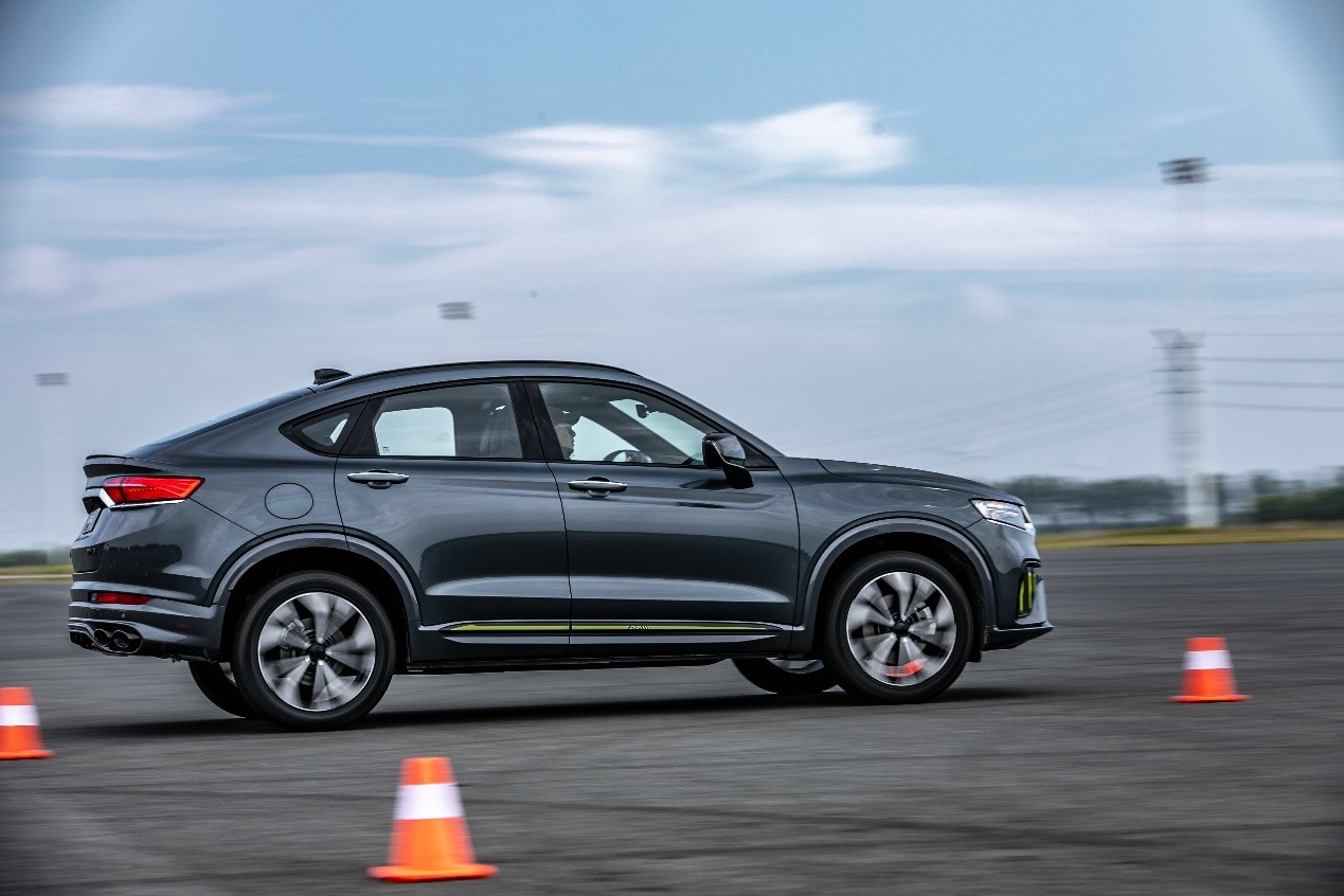 最后再來看一下吉利星越S,承襲吉利家族設計語言,前臉和側身加入電光綠的霹靂魔爪和星際穿梭飾條顯得十分動感,尾部雙邊四出排氣管彰顯運動性能,車身小溜背造型活力滿滿,整體上很有視覺沖擊力,很像是一款為年輕群體量身打造的SUV,同時也能照顧到成家人士的駕駛激情。